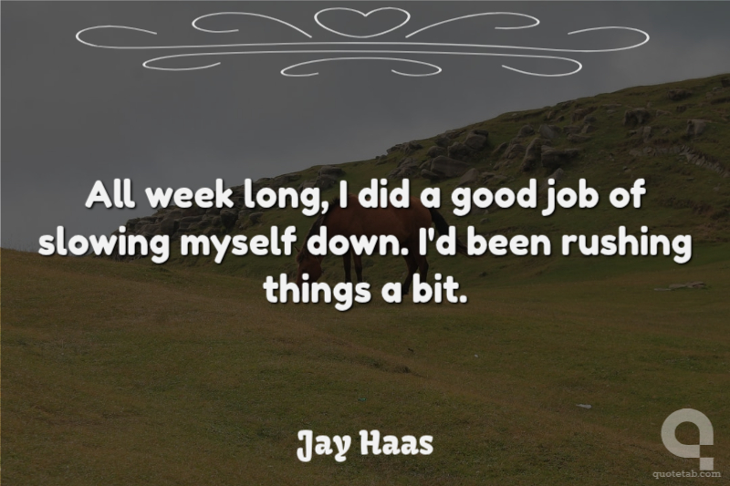 All week long, I did a good job of slowing myself down. I'd been rushing things a bit.