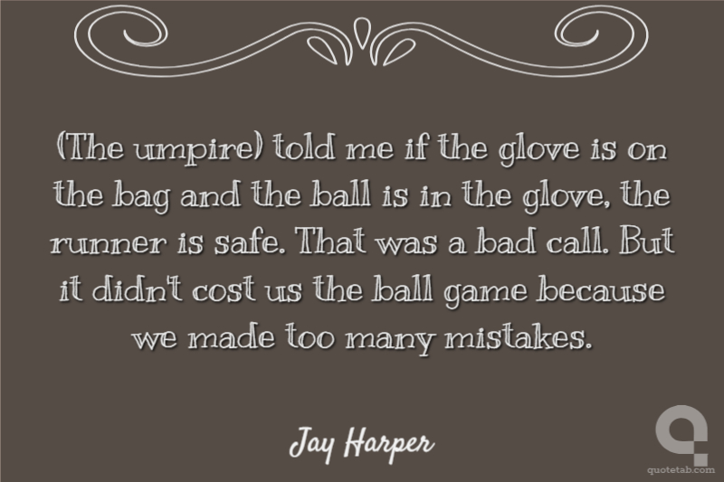 (The umpire) told me if the glove is on the bag and the ball is in the glove, the runner is safe. That was a bad call. But it didn't cost us the ball game because we made too many mistakes.