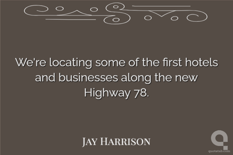 We're locating some of the first hotels and businesses along the new Highway 78.