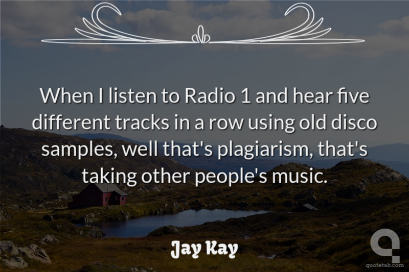 When I listen to Radio 1 and hear five different tracks in a row using old disco samples, well that's plagiarism, that's taking other people's music.
