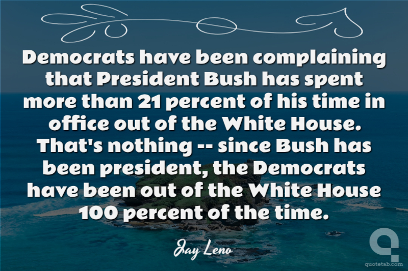 Democrats have been complaining that President Bush has spent more than 21 percent of his time in office out of the White House. That's nothing -- since Bush has been president, the Democrats have been out of the White House 100 percent of the time.