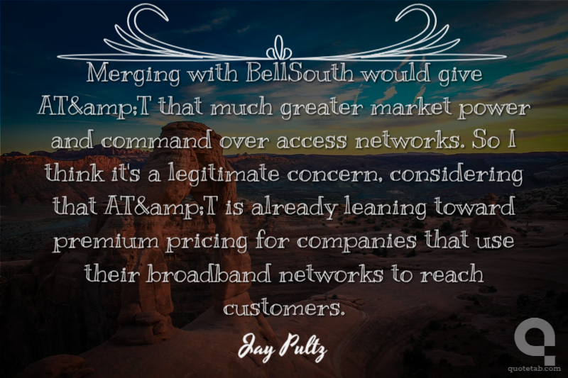 Merging with BellSouth would give AT&T that much greater market power and command over access networks. So I think it's a legitimate concern, considering that AT&T is already leaning toward premium pricing for companies that use their broadband networks to reach customers.