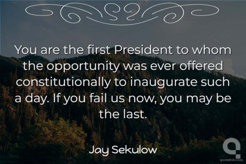 You are the first President to whom the opportunity was ever offered constitutionally to inaugurate such a day. If you fail us now, you may be the last.