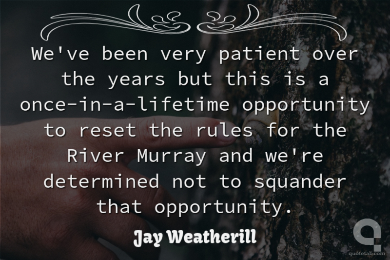 We've been very patient over the years but this is a once-in-a-lifetime opportunity to reset the rules for the River Murray and we're determined not to squander that opportunity.