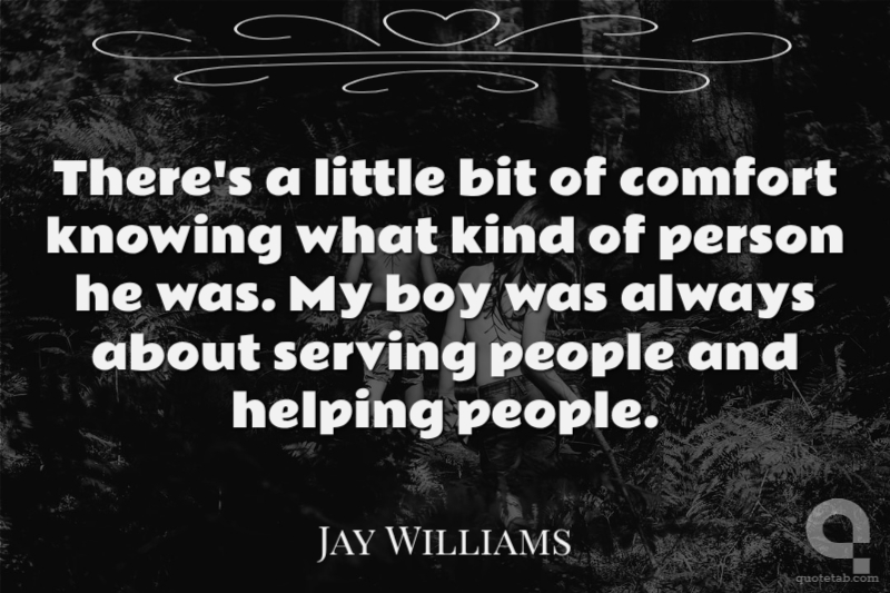 There's a little bit of comfort knowing what kind of person he was. My boy was always about serving people and helping people.