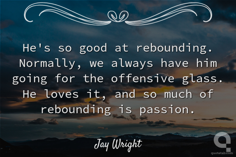 He's so good at rebounding. Normally, we always have him going for the offensive glass. He loves it, and so much of rebounding is passion.