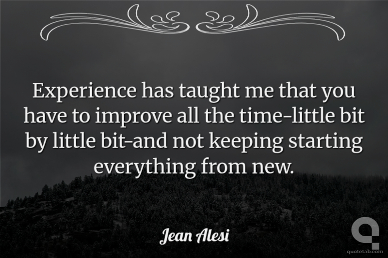 Experience has taught me that you have to improve all the time-little bit by little bit-and not keeping starting everything from new.