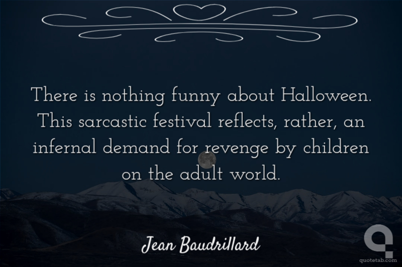 There is nothing funny about Halloween. This sarcastic festival reflects, rather, an infernal demand for revenge by children on the adult world.