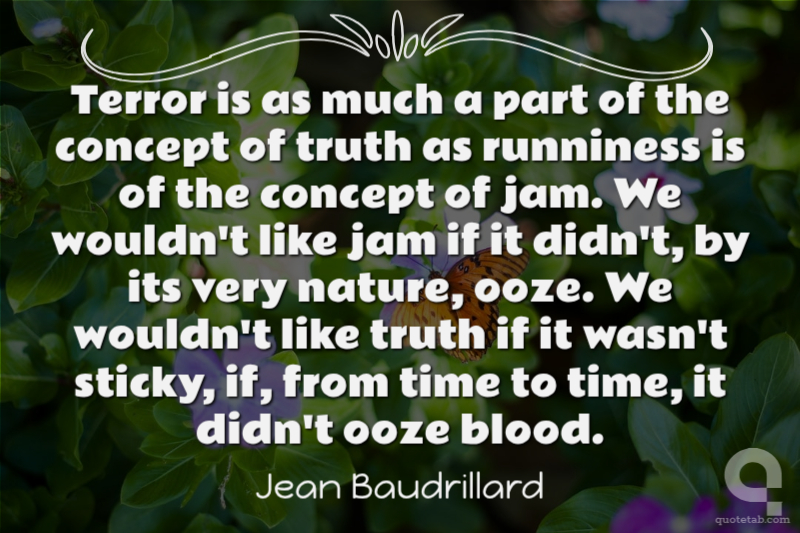 Terror is as much a part of the concept of truth as runniness is of the concept of jam. We wouldn't like jam if it didn't, by its very nature, ooze. We wouldn't like truth if it wasn't sticky, if, from time to time, it didn't ooze blood.