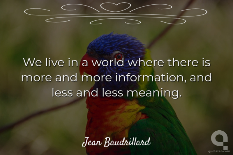 Jean Baudrillardwas a French sociologist, philosopher, cultural theorist, political commentator, and photographer. His work is frequently associated with postmodernism and specifically post-structuralism...