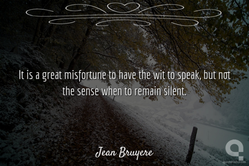 It is a great misfortune to have the wit to speak, but not the sense when to remain silent.
