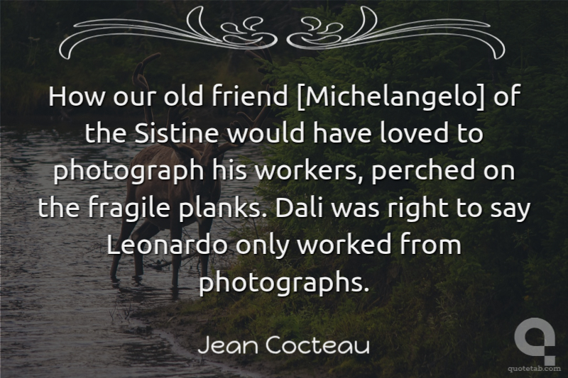 How our old friend [Michelangelo] of the Sistine would have loved to photograph his workers, perched on the fragile planks. Dali was right to say Leonardo only worked from photographs.