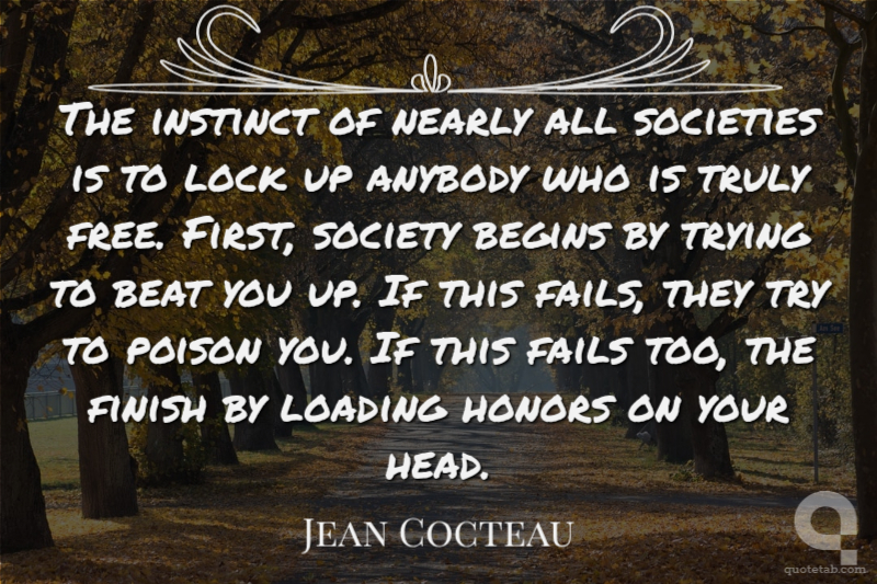 The instinct of nearly all societies is to lock up anybody who is truly free. First, society begins by trying to beat you up. If this fails, they try to poison you. If this fails too, the finish by loading honors on your head.