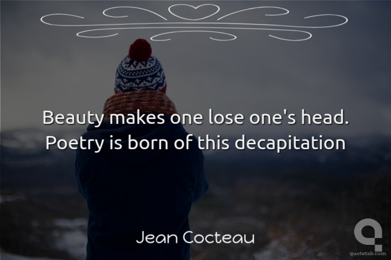 Beauty makes one lose one's head. Poetry is born of this decapitation