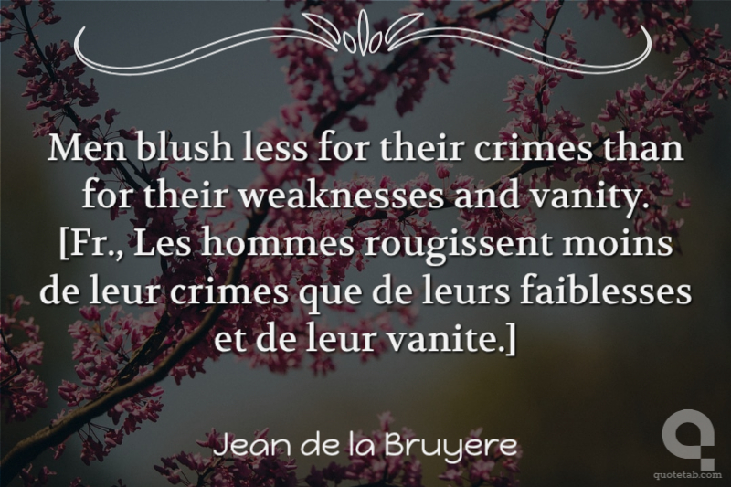 Men blush less for their crimes than for their weaknesses and vanity. [Fr., Les hommes rougissent moins de leur crimes que de leurs faiblesses et de leur vanite.]
