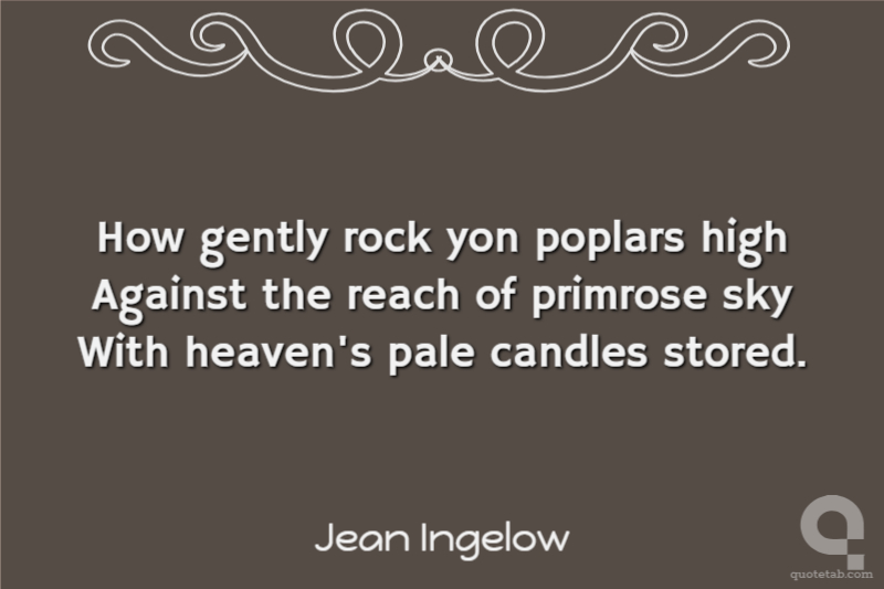 How gently rock yon poplars high Against the reach of primrose sky With heaven's pale candles stored.