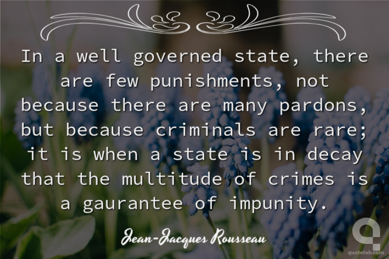 In a well governed state, there are few punishments, not because there are many pardons, but because criminals are rare; it is when a state is in decay that the multitude of crimes is a gaurantee of impunity.
