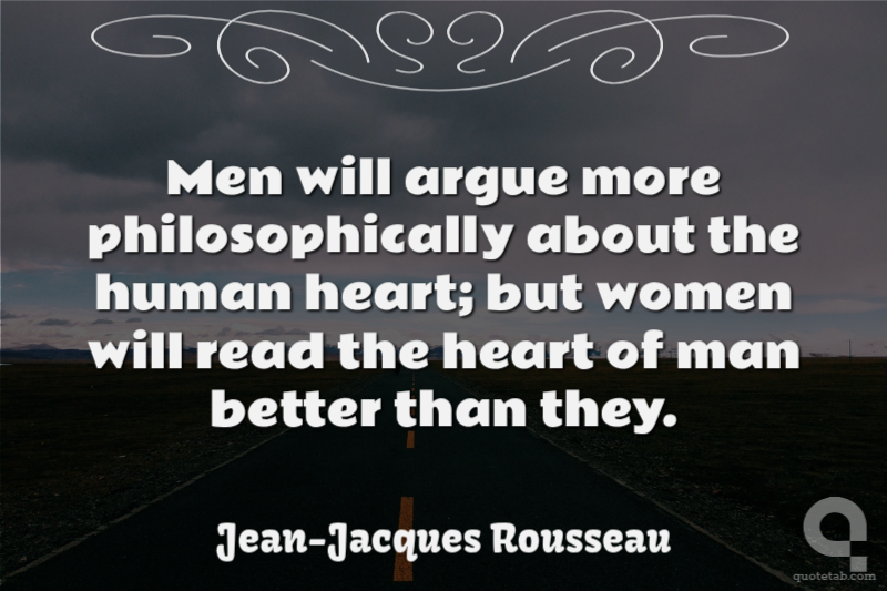 Men will argue more philosophically about the human heart; but women will read the heart of man better than they.
