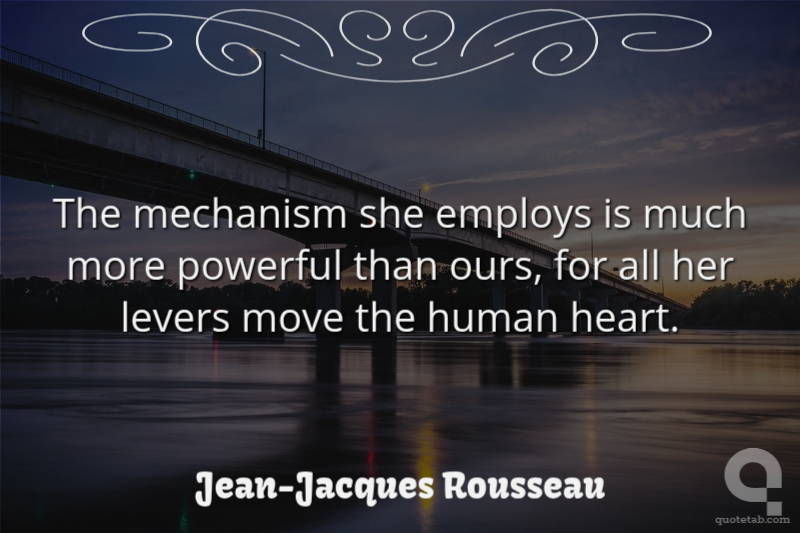 The mechanism she employs is much more powerful than ours, for all her levers move the human heart.