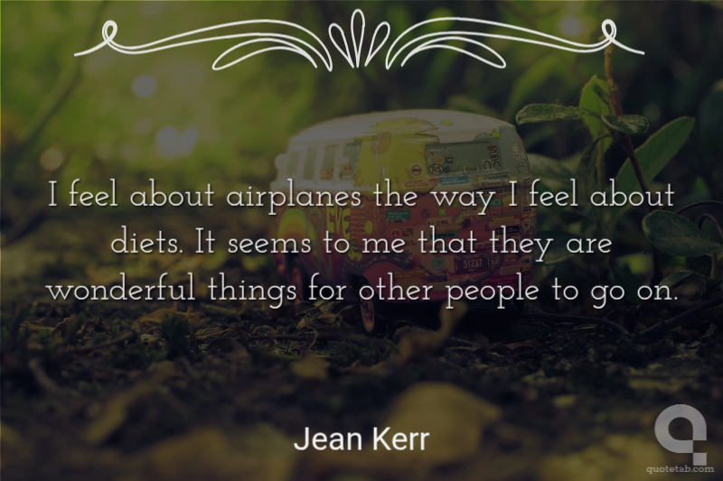 I feel about airplanes the way I feel about diets. It seems to me that they are wonderful things for other people to go on.