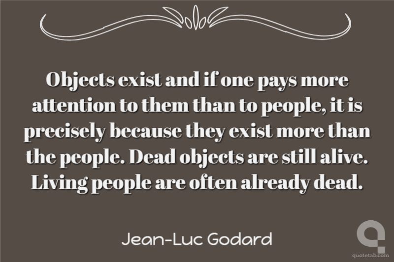 Objects exist and if one pays more attention to them than to people, it is precisely because they exist more than the people. Dead objects are still alive. Living people are often already dead.