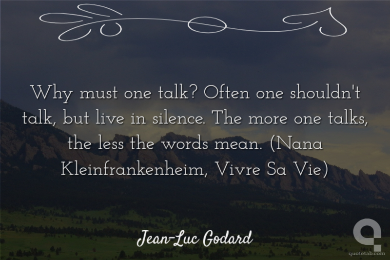 Why must one talk? Often one shouldn't talk, but live in silence. The more one talks, the less the words mean. (Nana Kleinfrankenheim, Vivre Sa Vie)