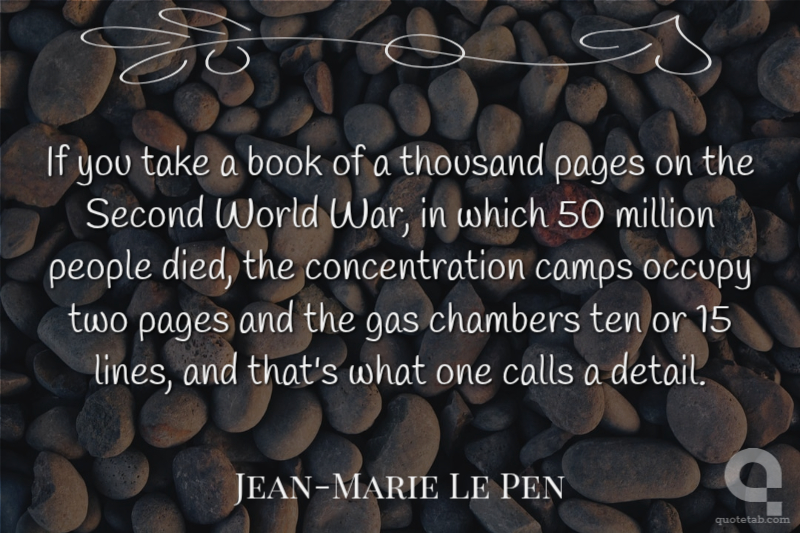 If you take a book of a thousand pages on the Second World War, in which 50 million people died, the concentration camps occupy two pages and the gas chambers ten or 15 lines, and that's what one calls a detail.