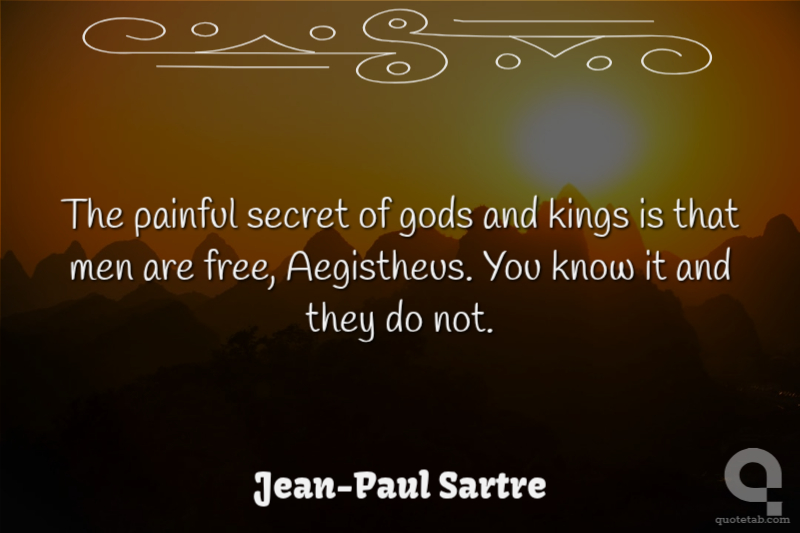 Aegistheus, the kings have another secret.... Once liberty has exploded in the soul of a man, the Gods can do nothing against that man. It is a matter for men to handle amongst themselves, and it is up to other men and to them alone to let him flee or to destroy him.