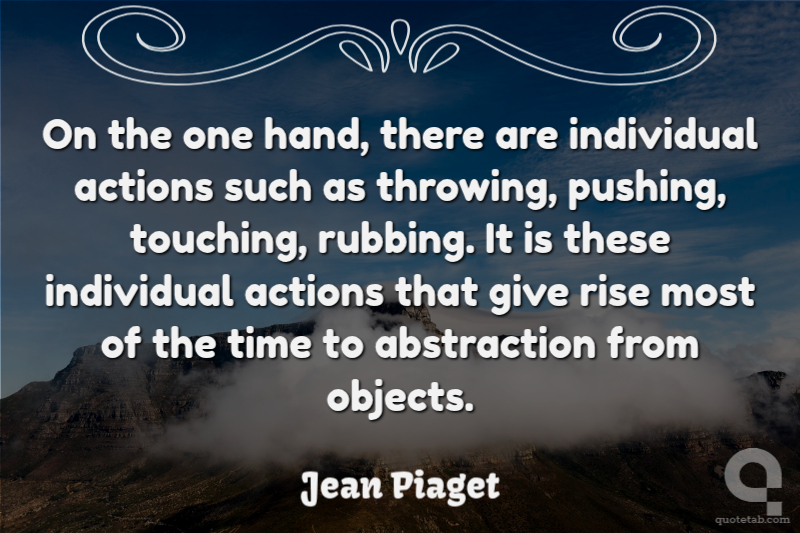 On the one hand, there are individual actions such as throwing, pushing, touching, rubbing. It is these individual actions that give rise most of the time to abstraction from objects.