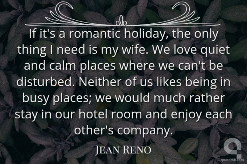 If it's a romantic holiday, the only thing I need is my wife. We love quiet and calm places where we can't be disturbed. Neither of us likes being in busy places; we would much rather stay in our hotel room and enjoy each other's company.