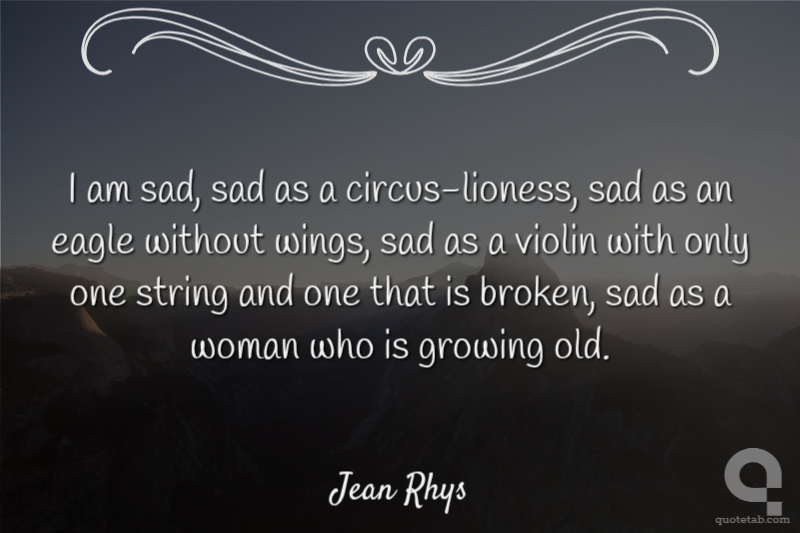 I am sad, sad as a circus-lioness, sad as an eagle without wings, sad as a violin with only one string and one that is broken, sad as a woman who is growing old.