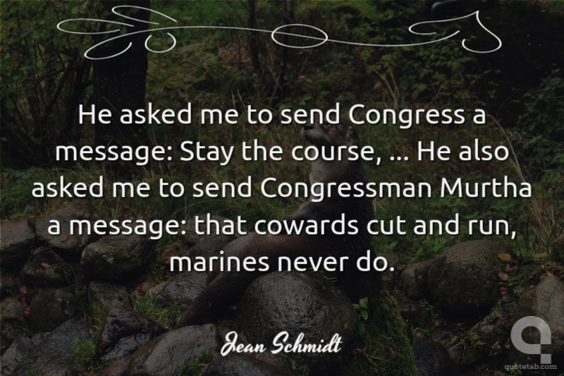 He asked me to send Congress a message: Stay the course, ... He also asked me to send Congressman Murtha a message: that cowards cut and run, marines never do.