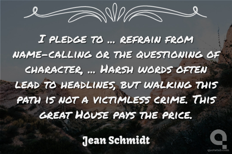 I pledge to ... refrain from name-calling or the questioning of character, ... Harsh words often lead to headlines, but walking this path is not a victimless crime. This great House pays the price.