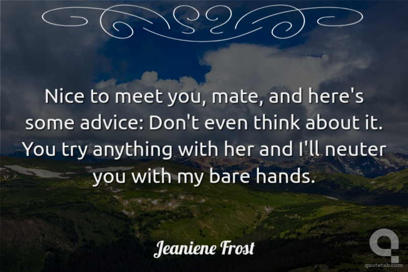 Nice to meet you, mate, and here's some advice: Don't even think about it. You try anything with her and I'll neuter you with my bare hands.
