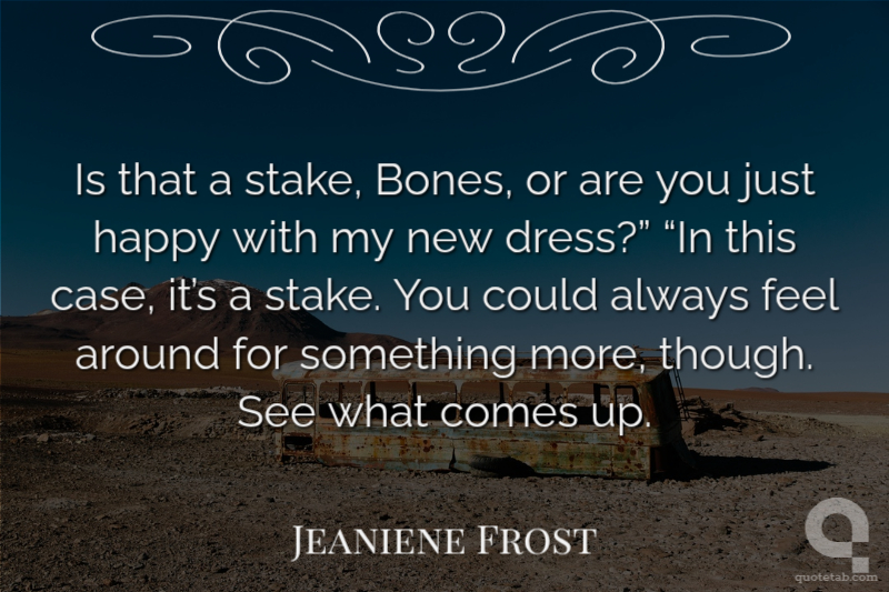 Is that a stake, Bones, or are you just happy with my new dress?” “In this case, it’s a stake. You could always feel around for something more, though. See what comes up.