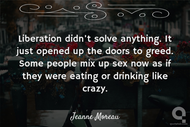 Liberation didn't solve anything. It just opened up the doors to greed. Some people mix up sex now as if they were eating or drinking like crazy.