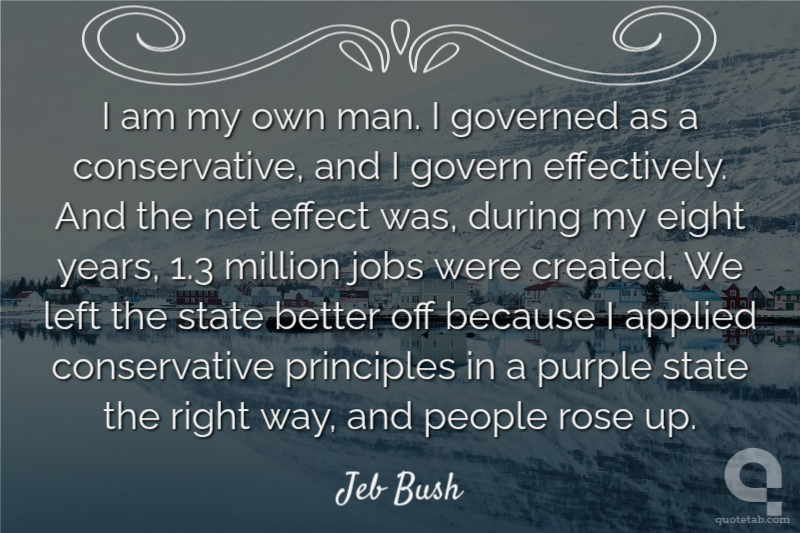 I am my own man. I governed as a conservative, and I govern effectively. And the net effect was, during my eight years, 1.3 million jobs were created. We left the state better off because I applied conservative principles in a purple state the right way, and people rose up.