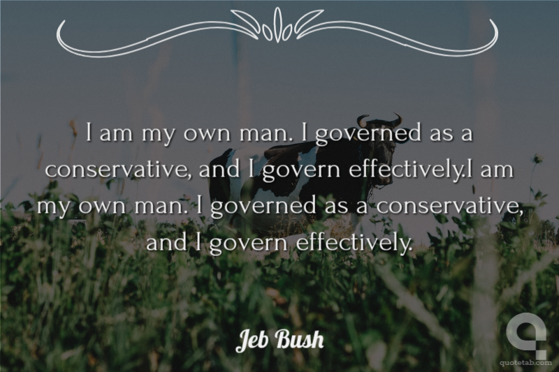 I am my own man. I governed as a conservative, and I govern effectively.I am my own man. I governed as a conservative, and I govern effectively.