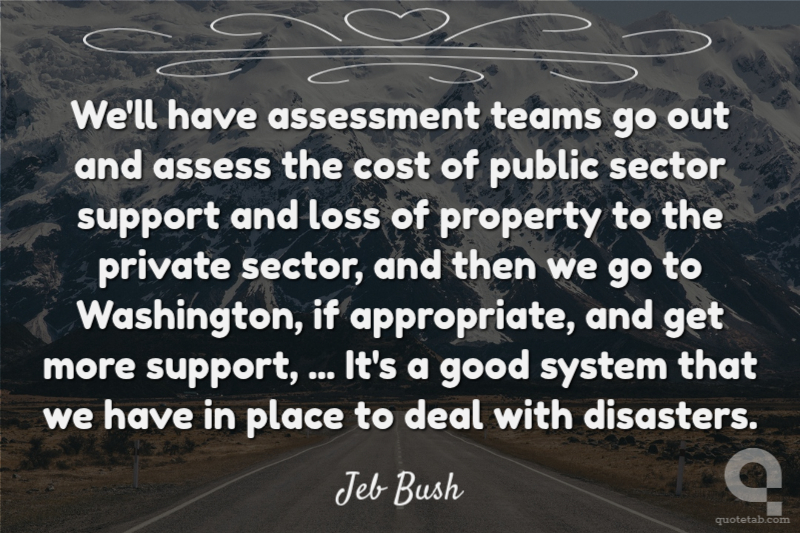 We'll have assessment teams go out and assess the cost of public sector support and loss of property to the private sector, and then we go to Washington, if appropriate, and get more support, ... It's a good system that we have in place to deal with disasters.