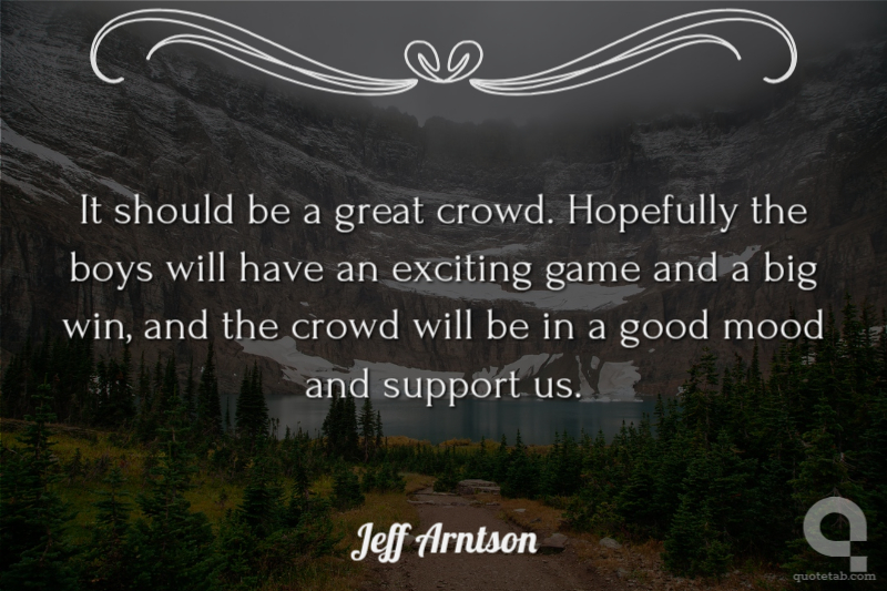 It should be a great crowd. Hopefully the boys will have an exciting game and a big win, and the crowd will be in a good mood and support us.