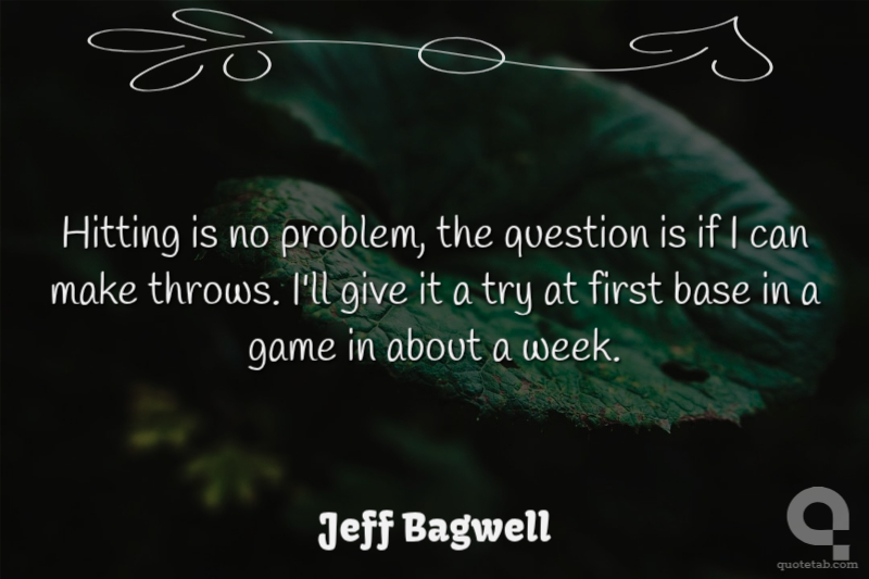 It's always nice to get a hit, but if I didn't get a hit it still wouldn't mean anything. I don't believe I have to show I can hit. It's whether or not I can throw, hit, play a full game, play in back-to-back games and three games in a row and be able to still hit.
