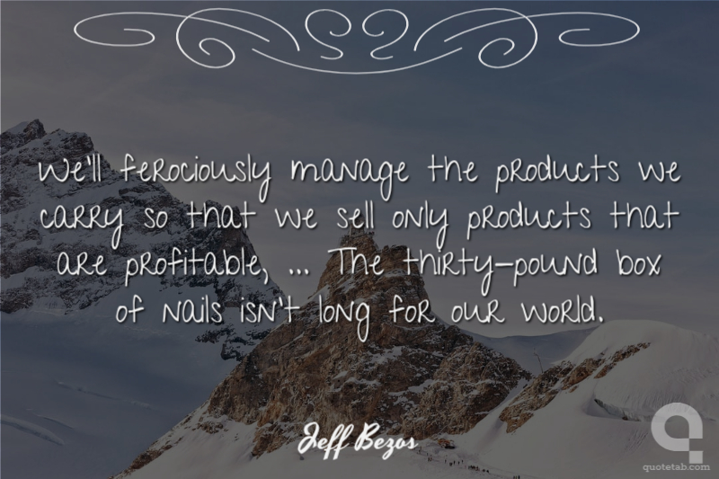 We'll ferociously manage the products we carry so that we sell only products that are profitable, ... The thirty-pound box of nails isn't long for our world.