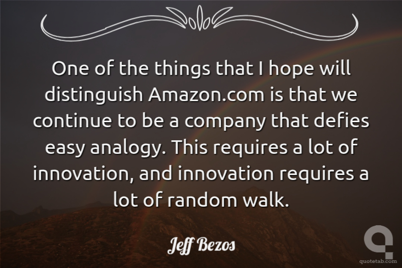 One of the things that I hope will distinguish Amazon.com is that we continue to be a company that defies easy analogy. This requires a lot of innovation, and innovation requires a lot of random walk.