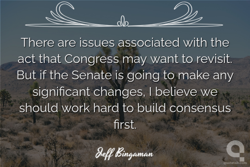There are issues associated with the act that Congress may want to revisit. But if the Senate is going to make any significant changes, I believe we should work hard to build consensus first.