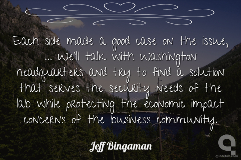 Each side made a good case on the issue, ... We'll talk with Washington headquarters and try to find a solution that serves the security needs of the lab while protecting the economic impact concerns of the business community.