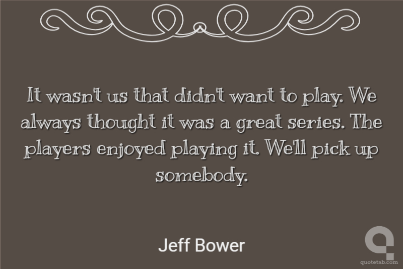 It wasn't us that didn't want to play. We always thought it was a great series. The players enjoyed playing it. We'll pick up somebody.