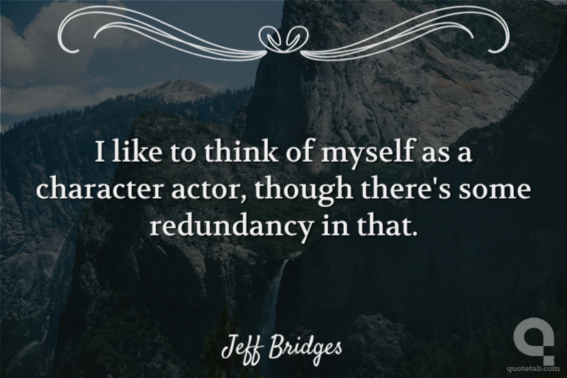 I like to think of myself as a character actor, though there's some redundancy in that.