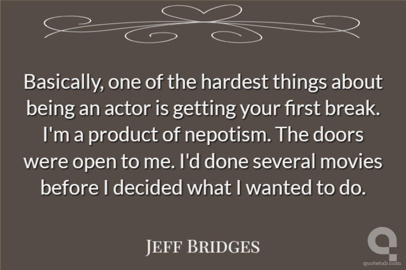 Basically, one of the hardest things about being an actor is getting your first break. I'm a product of nepotism. The doors were open to me. I'd done several movies before I decided what I wanted to do.