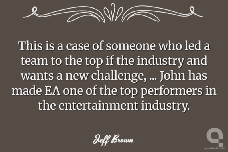 This is a case of someone who led a team to the top if the industry and wants a new challenge, ... John has made EA one of the top performers in the entertainment industry.