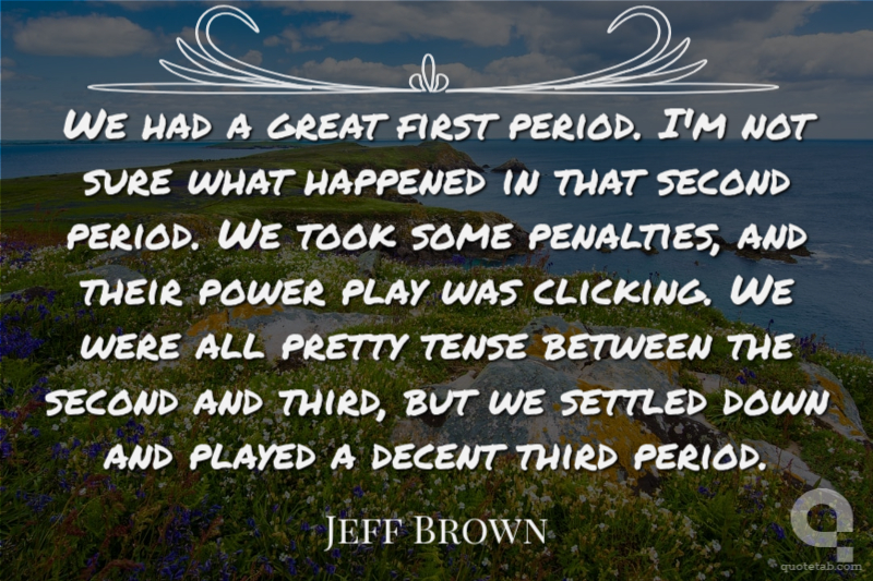 We had a great first period. I'm not sure what happened in that second period. We took some penalties, and their power play was clicking. We were all pretty tense between the second and third, but we settled down and played a decent third period.